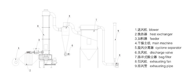 | 型號 | 主機內徑(mm) | 風量(m3/h) | 水份蒸發量(kg/h) | 裝機容量(kw) | 最大高度(m) | 占地面積(m2) |